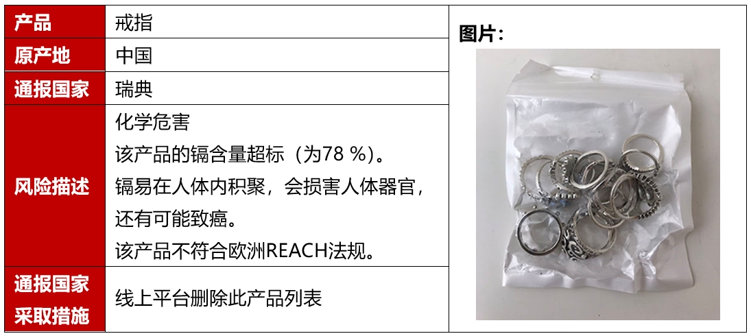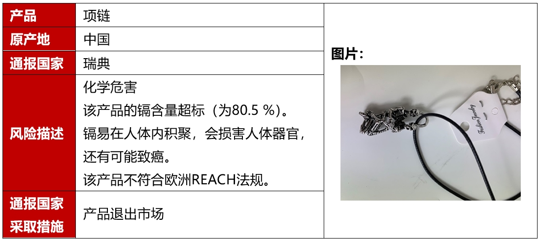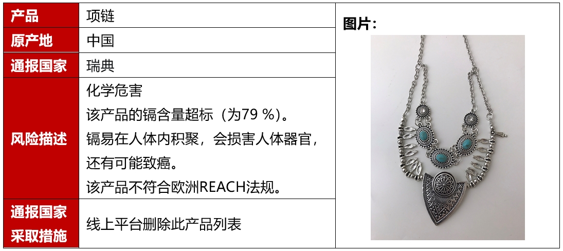 2023年12月,歐盟、美國、加拿大和澳洲共發(fā)生7例飾品召回案例,這些召回發(fā)生在歐盟,而且都是因為重金屬超標引起的。