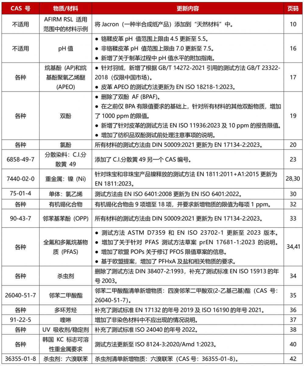 [導讀]: 近日,服裝及鞋襪國際RSL管理(AFIRM)工作組發(fā)布了2024版限用物質(zhì)清單(RSL),此次是繼2015年以來(lái)的第9次更新。AFIRM工作組成立于 2004 年,致力于減少在服裝及鞋襪供應鏈中使用有害物質(zhì)及有害物質(zhì)對供應鏈的影響?!禔FIRM RSL...