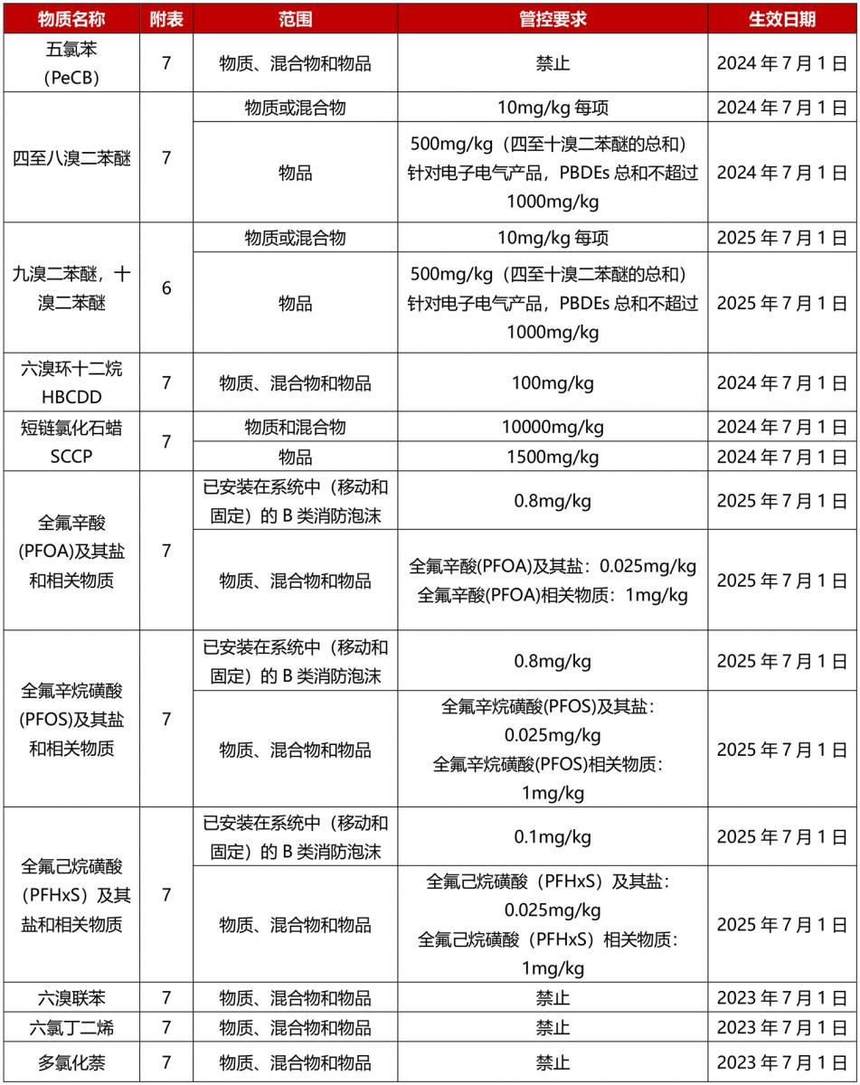 2023年12月18日,澳大利亞發(fā)布了《工業(yè)化學(xué)品環(huán)境管理(登記冊)修正案(2023年第1號措施)2023年文書(shū)》(以下簡(jiǎn)稱(chēng)“《修正案》”),將多種持久性有機污染物(POPs)列入《工業(yè)化學(xué)品環(huán)境管理(登記冊)2022年文書(shū)》(以下簡(jiǎn)稱(chēng)“《IChEMS登記冊》”)的附表6和附表7,新增的限制將于2024年7月1日或2025年7月1日開(kāi)始實(shí)施,除了個(gè)別,更新后要求基本跟歐盟POPs法規的要求一致。