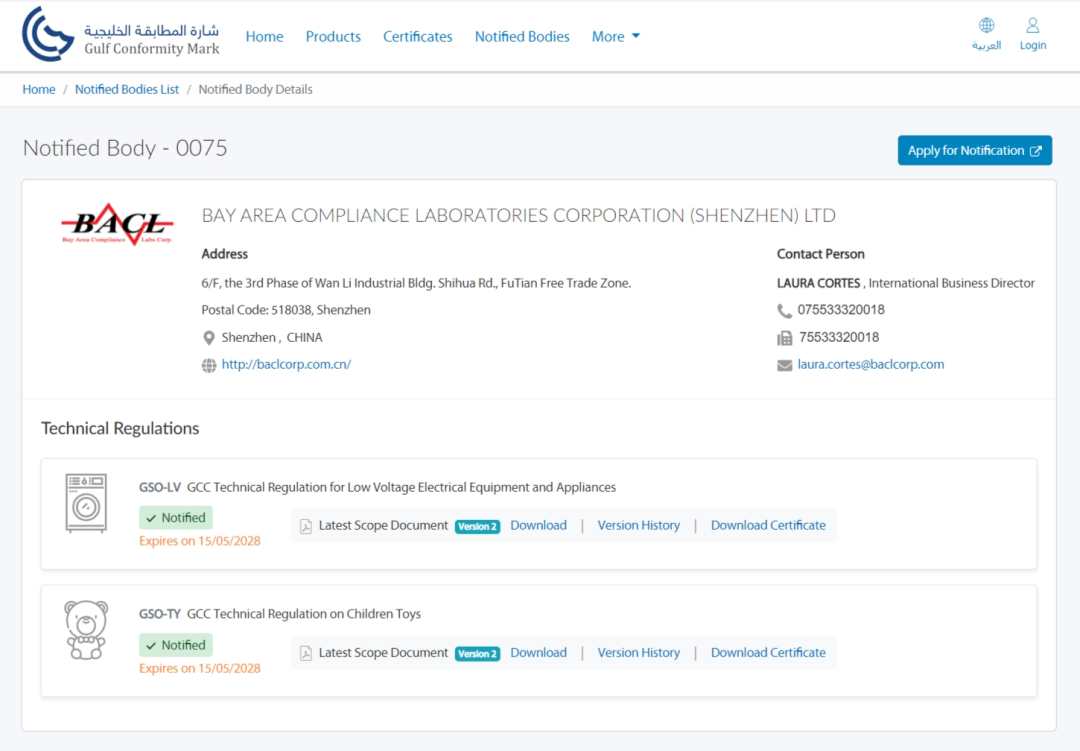 BACL GSO NB公告機構在GSO官網(wǎng):
