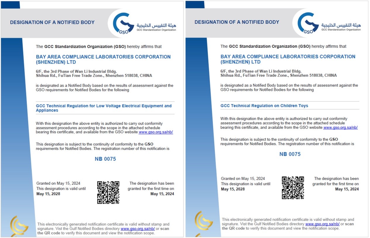 此次資質(zhì)擴項,進(jìn)一步鞏固了BACL作為GSO指定公告機構(NB)的專(zhuān)業(yè)地位,增強了BACL為國內電子電氣及兒童玩具制造商提供全面服務(wù)的能力。BACL可高效確保企業(yè)產(chǎn)品符合GCC技術(shù)法規并頒發(fā)G-Mark,幫助企業(yè)產(chǎn)品順利進(jìn)入所有海灣合作委員會(huì )(GCC)成員國銷(xiāo)售。