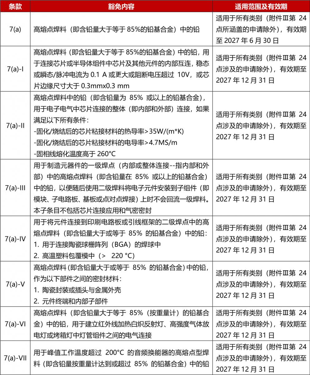 關(guān)于高熔點(diǎn)焊料,RoHS指令附錄III的7(a)豁免條款擬替換為以下內容: