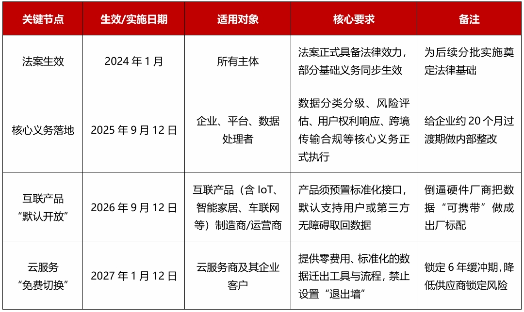 歐盟《數據法案》已于2025年9月12日強制執行,其適用具有域外效力,只要是將聯(lián)網(wǎng)產(chǎn)品投放至歐盟市場(chǎng)的制造商,無(wú)論企業(yè)是否設立在歐盟境內,均需遵守該法案。該法案圍繞數據訪(fǎng)問(wèn)、共享、產(chǎn)品設計等多方面給制造商設定了嚴格合規要求。